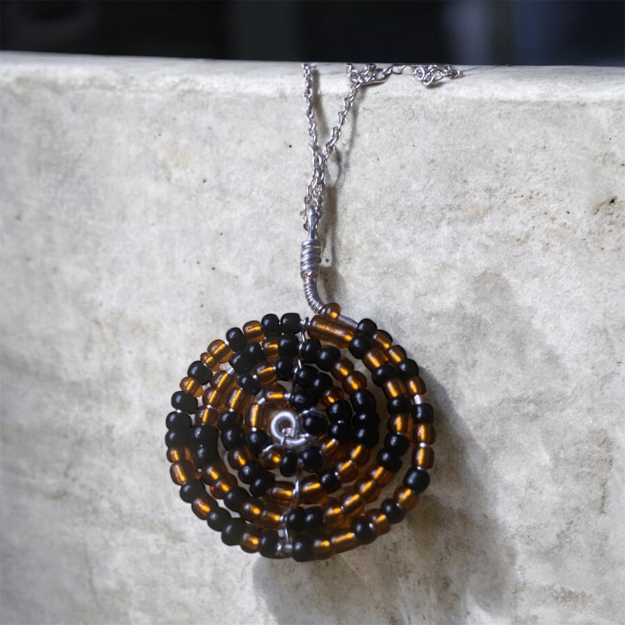 Ethiopian inspired pendant handmade using seed beads and silver plated wire.